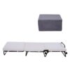 When surprise guests arrive, or extra seating or sleeping surfaces are needed, this fold out ottoman bed has you covered. This stylish ottoman hides a convenient fold out twin bed that can be folded quickly between a bed and an ottoman. Ideally used as extra seating or sleeping, this ottoman bed can be folded down to be used as a footrest, extra seating, or as an additional table surface. When not in use as a bed, a modern beige fabric cover creates a stylish ottoman that will fit in with any decor.