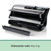 The FoodSaver 2 in 1 food preservation system removes air from specially designed bags, then applies heat to seal air-tight. Vacuum seal helps to protect foods from freezer burn and spoilage in long term storage. Retractable handheld sealer works with FoodSaver vacuum zipper bags, containers, canisters and marinators. Seal and cutter bar preps next bag with automatic seal operation. Vacuum view window ensures optimal control for the best seal possible. One touch starts vacuum and sealing process. Easily see when you need to replace vacuum seal rolls with open roll storage. Patented drip tray is removable for easy clean up.