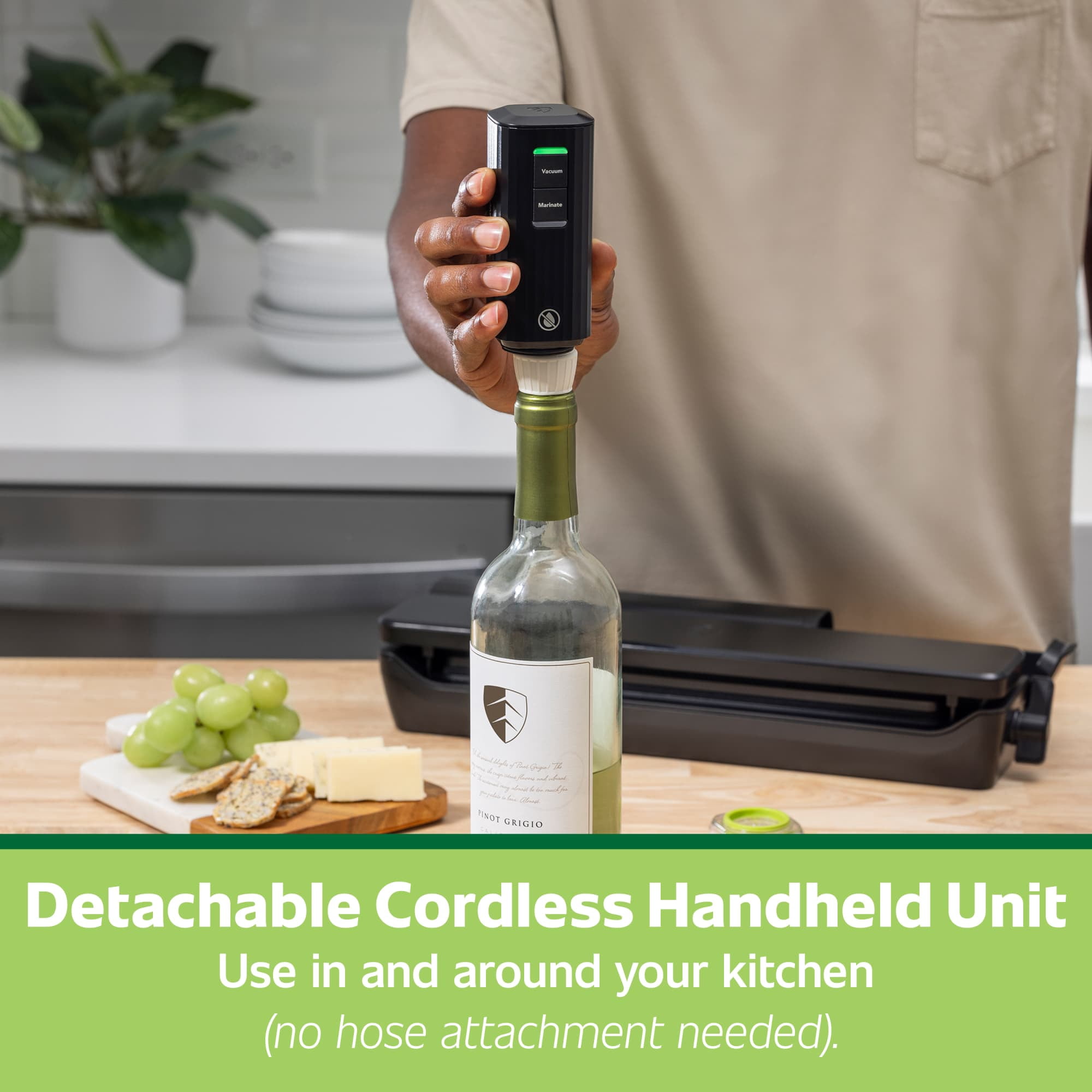• The Only Vacuum Sealing System to Include a Detachable Cordless Handheld Unit: Easily vacuum seal, heat seal, marinate, and more, in and around the kitchen (no hose attachment needed).