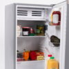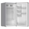 The 3.2 CU. FT. Compact Fridge (Model EFR395) offers generous fresh food storage with a slide-out shelf for easy cleanup. It includes a freezer compartment with an ice cube tray, and the reversible door allows for left- or right-handed use. The adjustable temperature control ensures customized cooling, while the fridge accommodates 2-liter and tall bottles. The modern black finish provides a sleek appearance, and a convenient dairy rack is located in the door for additional storage.