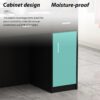 - Commercial-grade laminate worksurface and side panels are water- scratch- and stain-resistant