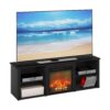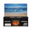 – Includes electric fireplace insert (no remote) heats up to 400 sq. ft. (4600 BTU) Large top panel which holds up to 60-Inch flat screen TV. Hold up to 80