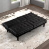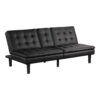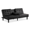 The Furniture of America Canu Faux Leather Futon Sofa Daybed is a stylish and useful piece for any room. It is covered in smooth faux leather for a clean, modern look. The sofa easily turns into a bed, making it great for guests. It also has a drop-down center with cup holders and a USB port, so you can relax and charge your devices at the same time.