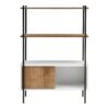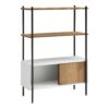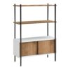 - Furniture of America Trist Transitional 3-Shelf Bookcase with Sliding Doors, White and Oak