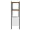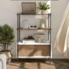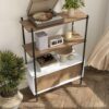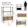 The bookcase features a chic white finish with distressed oak finish. It offers three shelves and a cabinet with sliding doors for storage. The metal leg frame ensures durability, while the anti-tip kit and adjustable foot pads enhance safety. Ideal for living rooms, hallways, or offices. Place it against the wall to showcase books, photos, and decorative items. Use the cabinet to store board games, magazines, or essentials, keeping your space clutter-free.