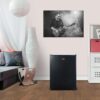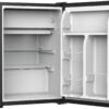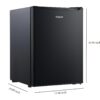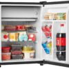 Enjoy the convenience of having your favorite chilled food or drinks whenever you want with the Galanz 2.5 Cu ft One Door Mini Fridge in Black. This is an ideal size for the dorm room, exercise room, office, game room or any other living space. This mini fridge has excellent organizational features including 2 removable glass shelves, 2 leveling front legs and storage for 2-Liter bottles built into the door. The convenient reversible door allows the refrigerator to open from either the left or the right side to use wherever you would like. It offers a mechanical adjustable thermostat control for quick and simple temperature adjustments. It consumes less power and is energy efficient with UL and eStar certifications. This Galanz refrigerator features a full-width freezer compartment that is extra cold space for short-term storage of frozen food. The Galanz 2.5 Cu ft mini fridge is quality built and made to last. Condition: New; Vendor Stock Number: GLR25MBKE02. Width: 17.48″.