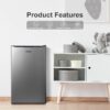 Galanz 3.3 Cu ft One Door Mini Fridge, Estar, Stainless Steel Look, New
