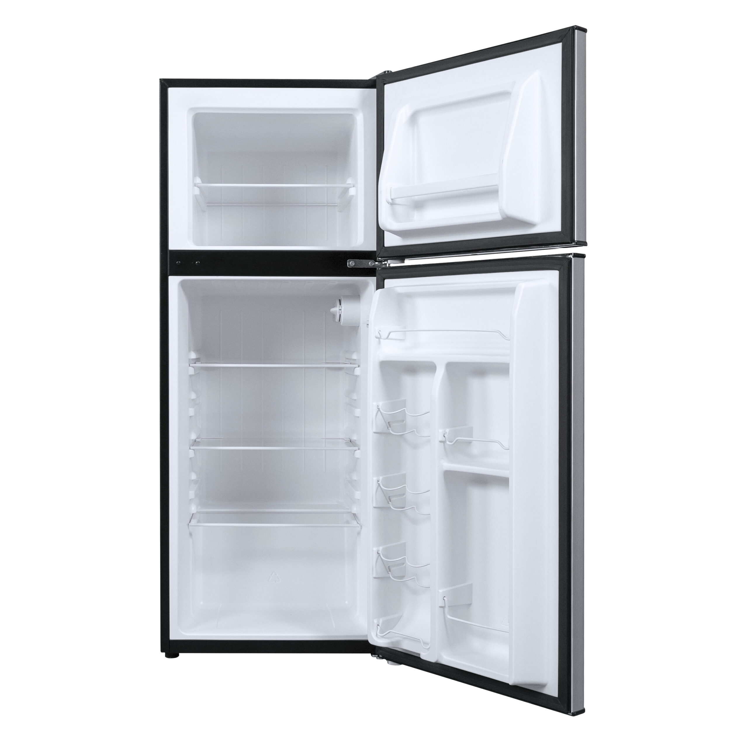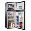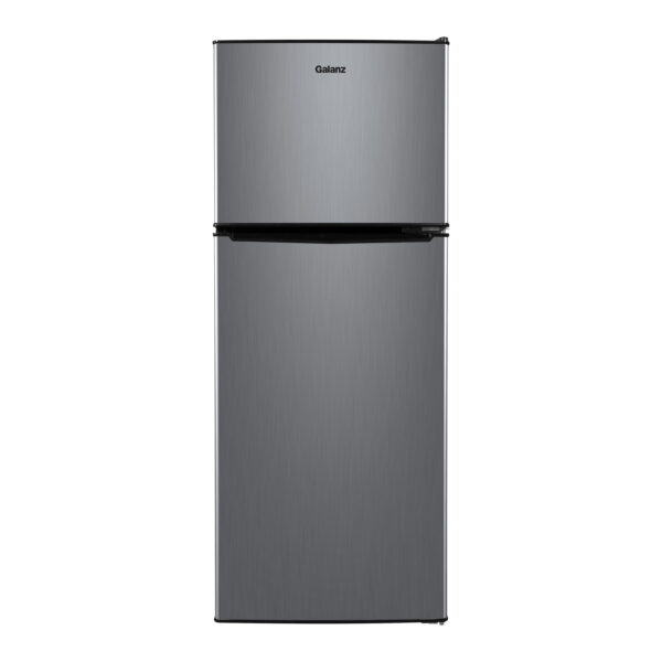 Galanz 4.6. Cu ft Two Door Mini Refrigerator with Freezer, Stainless Steel, New, Width 19.13″