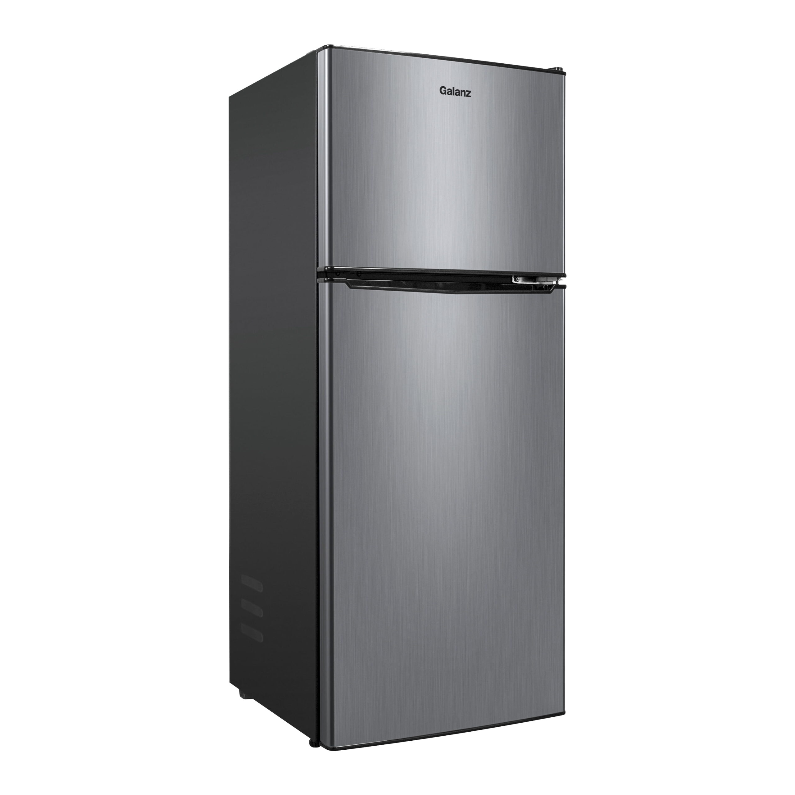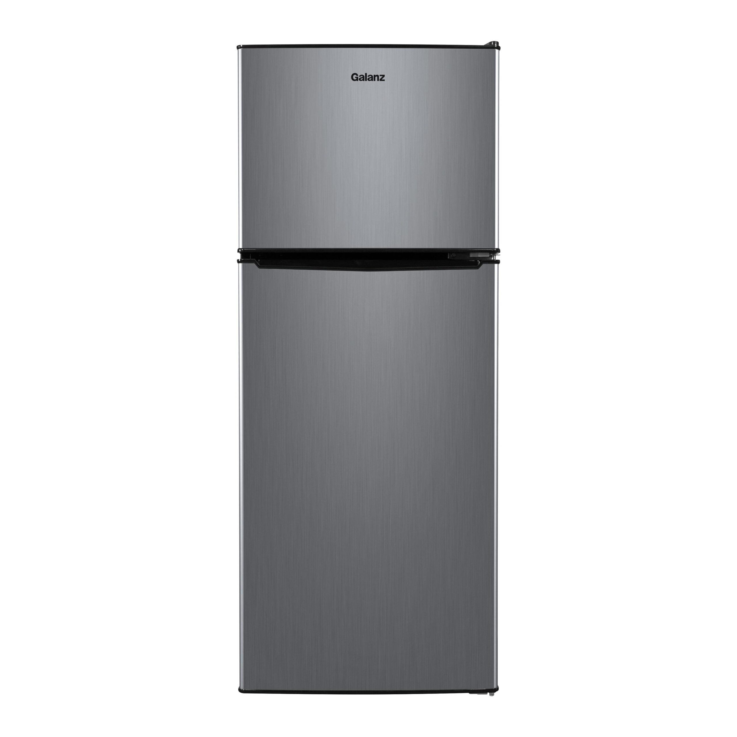 Galanz 4.6. Cu ft Two Door Mini Refrigerator with Freezer, Stainless Steel, New, Width 19.13"