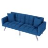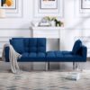 Gewnee 74 Velvet Upholstered Modern Convertible Futon, Adjustable Folding Sofa Bed, Guest Bed for Living Room Bedroom (Navy Blue)