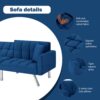– QUALITY DESIGN: Durably crafted with Velvet and 6 Silver metal legs, this convertible futon sofa fuses comfort and style that will last in your living space for years to come