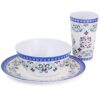 The Gibson Everyday Alhambra Blues dinnerware set is perfect for your every day indoor and outdoor use. This set comes with full service for four, including 9in dinner plates, 5.75in bowls, and 16oz tumblers. Constructed of lightweight and durable melamine, this set is top rack dishwasher safe for easy clean up. Each piece features a floral pattern with a painted rim that adds a touch of fun to your daily meals!