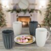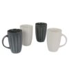 Enjoy your favorite beverage hot or cold with these beautiful 22 oz stoneware mug set. Made of durable stoneware finished with a beautiful reactive glaze. All mugs are microwave safe and dishwasher safe. A beautiful pattern surrounds the entire mug set, giving this set a nice touch of elegance and beauty. Comes in a set of 4 with two white and two gray colors making this the perfect gift idea or simply enjoy in your home.