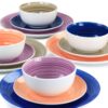 the Color Vibes 12 piece dinnerware set by Gibson Home is the perfect set to add a bit of color and design to your table. This set comes with service for four including dinner plates, dessert plates, and cereal bowls. Each place setting has it’s own color way with a banded interior and solid exterior. Perfect for entertaining or for every day dining, this set will soon become a favorite. Made with fine ceramic that is completely dishwasher and microwave safe for easy clean up and fast reheat. Add some vibrant color to your table with this set!