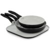Get all your cooking essentials in one package with the 11 Piece Gazebo Cookware Set by Gibson Home. Each piece is constructed with durable aluminum that is coated with a ceramic nonstick coating that promotes healthy and Eco-friendly cooking. the nonstick coating prevents excessive stuck on food residue and allows for easy, hand wash recommended clean up. This set includes tempered glass lids for sauce and saute pans so you can monitor cooking progress safely. Soft grip Bakelite handles and knobs remain cool while you are cooking to provide a safe and worry free cooking experience. Pieces are compatible on gas, halogen, and electric cook tops.