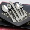 The Gibson Home South Bay 65 piece flatware set provides everything you need for dining and serving. This utensil set includes service for twelve, serving tools and a wire storage caddy. This stainless Steel constructed tableware will last throughout all your dining and entertaining need.