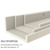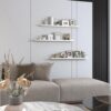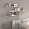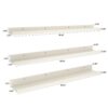 White Multi-Size Shelves Set in 3 sizes : 3 pack 36 long shelves varying in width and depth, large shelf 36.02 x 5.51 x 2.68 inches, medium shelf 36.02 x 4.69 x 2.32 inches, small shelf 36.02 x 3.82 x 2. They provide enough space for your utility and display purposes. (PLS NOTE: It is not pure white, it is more of a beige or light grayish woodgrain white, but it is still chic )