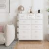 GIKPAL 12 Drawer Dresser, White Dresser Chest of Drawers Dressers for Bedroom PU&Fabric Dresser with Side Pockets and Hooks, White