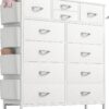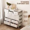GIKPAL 12 Drawers Dresser for Bedroom, White Tall Dresser with Side Pockets and Hooks, Fabric&PU Storage Dressers, Dressers for Bedroom Kids, Chests of Drawers for Closet Hallway Living Room Entryway Rustic.
