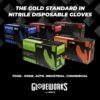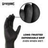 Gloveworks Black Nitrile Industrial Gloves are the perfect combination of strength, dexterity, and comfort. Nitrile has three times the puncture resistance of latex. At 5 mils thick, they are more than 50 percent thicker than standard nitrile gloves. Excellent protection against common and specialty chemicals, including cleaning solutions. Great fit, superb comfort, and high tactile sensitivity. Micro-roughened surface and textured fingertips enhance grip. Polymer coated for easy glove changes. Designed for professionals, they are popular in automotive, industrial, janitorial, sanitation, food service, and safety applications. Perfect for countless uses in the home. Available in extended size range from small though extra extra large, which means the right fit for everybody.
