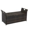Weather-resistant Material The storage bench is made of heavy-duty powder coated steel frame, rust-resistant and stronger. Wrapped with premium PE rattan, which is weather resistant and hand-woven
