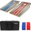 – Full set includes 2 all-weather cornhole boards, 8 all-weather canvas bean bags, and a convenient carrying case