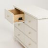 Introducing the Graco Sasha 6-Drawer Dresser, a timeless and elegant piece with scalloped carved detailing. It’s the perfect addition to elevate your nursery or kids’ bedroom, enhancing both functionality and style. With its vintage-inspired charm and ample storage capacity, the Sasha offers versatility, making it a great addition to any nursery or kids’ room. Enjoy an easy assembly experience with pre-installed drawer tracks. Safety is a priority, and the Sasha features an innovative interlocking drawer system. This system allows only one drawer to open at a time, promoting safety and preventing tip-over accidents, providing peace of mind for you and your family. Complete your nursery or kids’ bedroom look by pairing the Sasha 6-Drawer Dresser with the rest of the Sasha collection, including the Graco Sasha 5-in-1 Convertible Crib with Drawer and the Graco Sasha 3-Drawer Chest with Changing Table Topper, for a beautifully cohesive look.