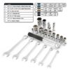 – FULL RANGE OF BOAT TOOLS: 3/8-inch drive sockets; 1/4-inch drive sockets; 3/8-inch drive reversible ratchet with slip resistant grip; 1/4-Inch drive spinner handle; Tape measure; Gap gauge; Feeler gauge; Crimping tool