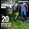 – Two Greenworks 24V POWERALL batteries combine for 48V of exceptional, better than gas power without leaving the 24V battery platform