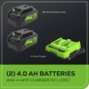 – Greenworks 48V (2 x 24V) 16-inch Brushless (Attachment Capable) String Trimmer, (2) 4Ah USB Batteries and 4A Dual Port Charger Included 2123402: