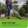 – Variable speed trigger allows you to control cutting speed on the go, so you can easily maneuver around plants and shrubs