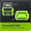 – Greenworks 60V 16″ Front Mount String Trimmer & 750 CFM/170MPH Blower Kit + 2.5Ah Battery & 3Amp Charger: