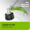 - 60 second reload: Load N’ Go trimmer head holds 18′ of 0.095″ line