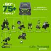 - Charges in 75 minutes using the Greenworks charger