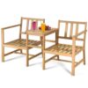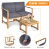 Gymax 3 in 1 Acacia Wood Furniture Set Patio Outdoor w/ Cushion Coffee Table