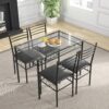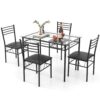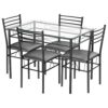 Gymax 5 Piece Dining Set Glass Top Table and 4 Upholstered Chairs Kitchen Room Furniture