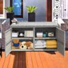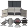 Our storage box will a perfect addition to your patio, garden, poolside or other outdoor places. With about 88-gallon inner space and 2-layer design, this box can store your various daily items, such as cushions, garden tools and so on. There are two ways to open the box: open from the top cover or open from the front door, allowing you to use it easily. Moreover, premium steel and tight rattan ensure the overall sturdiness and durability. It can not only work as a storage box, but also provide a seat for you to take a rest. And it will be easy for you to clean and assemble it. Don’t hesitate to take our storage box home!