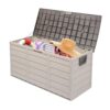 Our storage box will a perfect addition to your patio, garden, poolside or other outdoor places. With about 88-gallon inner space and 2-layer design, this box can store your various daily items, such as cushions, garden tools and so on. There are two ways to open the box: open from the top cover or open from the front door, allowing you to use it easily. Moreover, premium steel and tight rattan ensure the overall sturdiness and durability. It can not only work as a storage box, but also provide a seat for you to take a rest. And it will be easy for you to clean and assemble it. Don’t hesitate to take our storage box home!