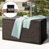 Gymax 88 Outdoor Gallon Rattan Storage Box Patio Container Seat w/ Door Brown