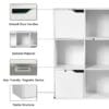 The fashionable side cabinet is made of thicken chipboard and premium screws, which is durable and stable for extend services lifetime. Additionally, free standing structure with anti-tipping devices provide better stable and extra safe. Combine open storage cubes with enclosed storage cubes, so it is multifunctional and versatile to meet your needs. Most importantly, the 6-cube storage cabinet can make the most use of your limited space and provide ample storage and display space for your books, toys, potted plants and decorations. Featuring clean lines and modern style, this beautiful and practical furniture is the perfect addition to your bedroom, living room, kitchen and office.