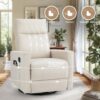 GZMR Swivel Faux Leather Recliner Chair Beige Faux leather Upholstered Swivel Recliner