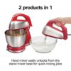– Perfect for thick mixtures like cookie and bread dough and the hand mixer easily unlocks from the base for quick mixing jobs