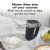 – The hand mixer with storage case stands upright so drips go into your bowl when you need to stop mixing or add more ingredients.