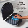 – EASY TO CLEAN: The nonstick grilling plates keep food from sticking as you cook and are easy to wipe clean after it cools. The removable drip tray goes in the dishwasher after discarding drippings for simple cleanup.