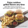 – HIGH SEARING TEMPERATURE FOR OUTDOOR GRILLED FLAVORS: The nonstick, ribbed grill plate achieves 450°F searing temperature so you can enjoy the look and taste of your favorite grilled foods year-round. Grills six 4 oz. hamburgers in under 10 minutes.*