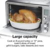 – LARGE CAPACITY PROVIDES PLENTY OF COOKING SPACE: The air fryer convection oven’s large 0.88 cu. ft. capacity is the perfect size for making family meals. Cook up to a 8 pound turkey, bake a 12″ diameter pizza, grill 6 burgers, bake desserts and more.