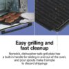 – DURABLE GRILL PLATE DESIGNED FOR EASY GRILLING AND FAST CLEANUP: The grill plate has a built-in handle for easily sliding in and out of the oven, and pour spouts that make it simple to discard drippings. The grill plate is nonstick and dishwasher safe.