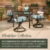 – MODERN SLEEK DESIGN: The Montclair Dining Collection by Hanover includes stylish and elegant stamped back chairs and stamped top table. This set includes four cushioned swivel rocker chairs and 40″ stamped top dining table. The set is made of heavy duty, steel rust-resistant frames with UV protection for all-weather use. Perfect addition to your patio, yard, deck, or porch. Designed for durability for long lasting use to enjoy for many years.