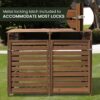 Keep your trash and recycling bins tidy and secure with a wooden trash and recyclables bin storage shed from Hanover. Unsightly trash bins will no longer blight your backyard or be rummaged through by critters, instead keep them out of sight and out of mind in one of these simple, yet stylish, storage sheds, designed to fit up to two 60 gallon garbage cans or recycling bins. Flip up one or both of the dual hinged lids when taking out the trash or use the front two doors to move your trash cans in and out of the shed with ease. To keep animals and birds from taking advantage of unenclosed trash, the shed comes with a metal, locking latch that accommodates most combination or keyed locks (padlock NOT included). Stable and durable, the wooden shed is constructed with natural fir wood to last through many seasons. Say goodbye to clutter and keep everything organized in its place, even your trash cans. For all of your outdoor storage needs, depend on quality products from Hanover.