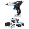There are literally hundreds of quick fixes and crafting projects you can do with HART s 20V Glue Gun. This gun heats up quickly and features an LED-lit on/off indicator, so you know when it s safe to use. Once the gun heats up, give the trigger a squeeze and the glue will pour freely from the nozzle. And unlike other glue guns that require a cord, this tool offers freedom of mobility. Thanks to its rechargeable 20V lithium-ion battery, you can take this glue gun anywhere. Another thing you ll appreciate is the self-standing design. It eliminates all those annoying moments where the glue gun keeps tipping off and falling. This bundle also includes (2) 4.0 Ah batteries, which provide 4x runtime versus the 1.5Ah.